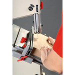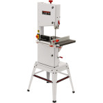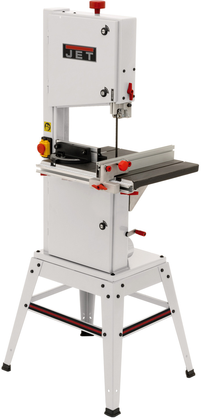 Jet JBS-12 – универсальная ленточная пила для частных мастерских, предназначенная для любительской эксплуатации, но часто приобретается и профессионалами в качестве вспомогательного инструмента, дополняющего циркулярную пилу. Такая популярность вызвана хорошим балансом характеристик, конструкция пилы хоть и простая относительно профессиональных моделей, но надежная и не имеет «подводных камней». Неоспоримые достоинства модели – массивный чугунный стол, гарантирующий работу без вибраций, двухскоростная ременная передача, позволяющая выбирать режим резания, простые в настройке трехточечные направляющие пильного полотна на шарикоподшипниках. В штатную комплектацию станка входит подставка для напольной установки.