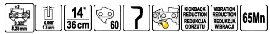 Ланцюг YATO l= 14"/ 36 см (60 ланок) для ланцюгових пил з напрямною шиною YT-849311