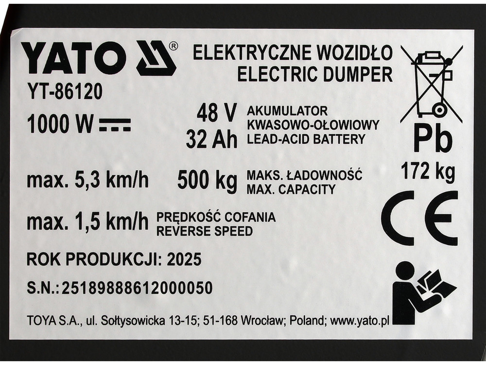 Самоскид-міні електричний YATO YT-86120