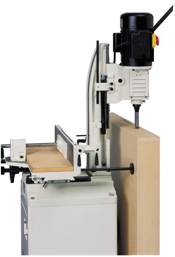 Jet 719А - точный и удобный в работе долбёжно-пазовальный станок для профессиональной работы с деталями, стыкующимися под прямым углом. Модель имеет координатный стол с приводами по осям, регулируемыми при помощи вращающихся маховиков. Это позволяет выполнять и продольные, и поперечные пазы, не снимая деталь и не ослабляя прижим, что обеспечивает простоту работы и высокую точность.