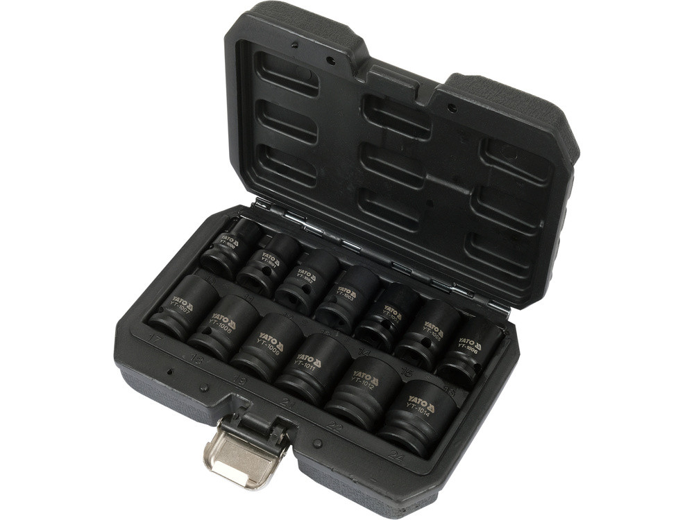 Набір головок торцевих ударних YATO 6-гранних з квадратом 1/2", M10-M24 мм. 13 шт. [10]