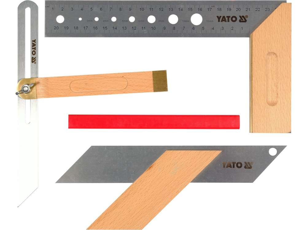 Набір столярних кутників 3 шт YATO : 90˚ L=250 мм,рег.кут,діаг.45˚,135˚L=235 мм стол.олів L=180мм