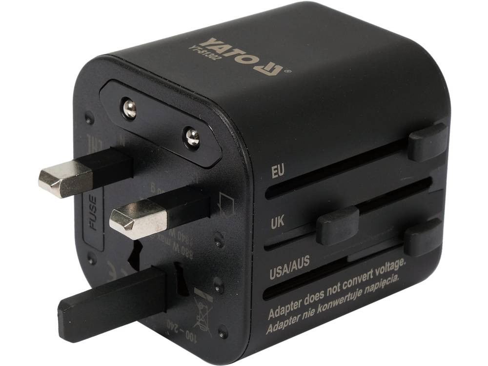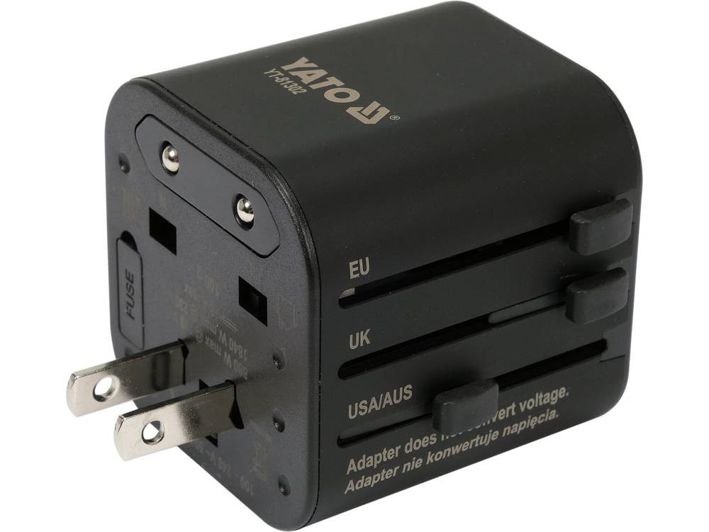 Розетка-адаптер електромережевий 110-240 В, до 8 А YATO з універсальним гніздом і вилками [50]