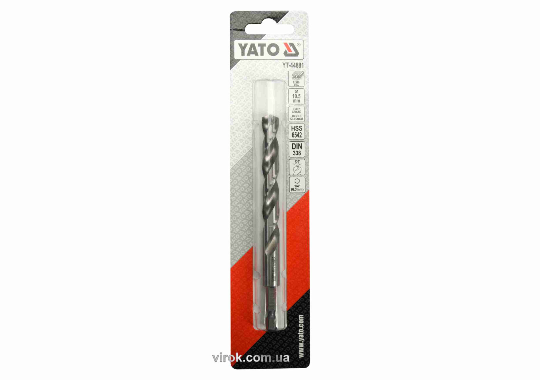 Свердло по металу YATO 10.5 x 133/87 мм HEX-1/4" HSS 6542 для нержавіючої конструктивної легованої сталі